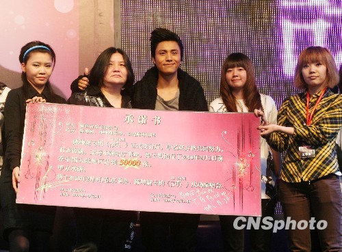 图为陈坤和众歌迷签下“承诺书”。中新社发 李学仕 摄