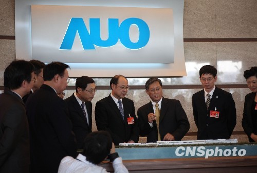 图为台湾面板业龙头企业友达董事长李焜耀(右三)向郑立中等介绍集团发展情况。中新社发 陈立宇 摄