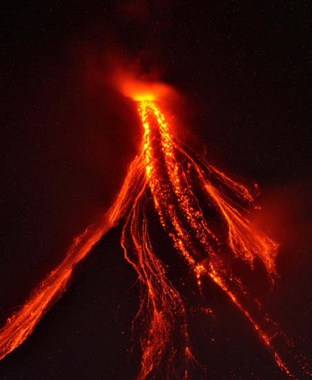 12月23日,菲律宾阿尔拜省黎加斯比市马荣火山口喷发大量岩浆。