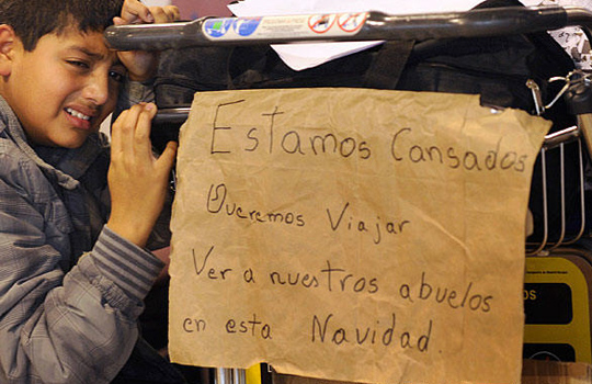 图为一名因彗星航空公司突然宣布倒闭而滞留机场的小乘客在行李车旁哭泣。
