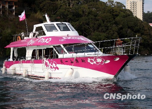 12月24日,参加第四次两会领导人会谈的海协会成员入住南投涵碧楼。图为部分代表团成员下午乘船游览日月潭。