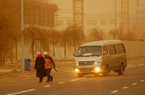 2009年12月24下午,内蒙古自治区锡林郭勒盟阿巴嘎旗居民冒着大风沙尘天气出行。当日,受强冷空气影响,呼和浩特市、锡林郭勒盟等地相继出现大风沙尘降温天气,有些地方刮起了沙尘暴,气温下降10℃至15℃。