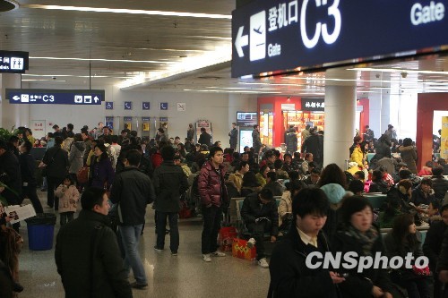 12月25日, 继昨天遭受近年来最为严重的一场浓雾天气袭击后,成都双流国际机场再次遭受能见度更低、持续时间更长、影响范围更广、航班延误和滞留旅客人数更多的浓雾困扰。连续的浓雾天气导致了双流机场被迫关闭6个半小时,直接造成126个进出港航班延误,24个进出港航班取消,17个进港航班不能正常准点到达双流机场,分别备降昆明、贵阳、西安、重庆等周边机场,同时致使约1.4万名出行旅客受阻于机场。中新社发 吕俊明 摄