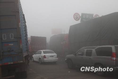 图:四川眉山连续遭遇大雾 高速公路时间关闭(2)
