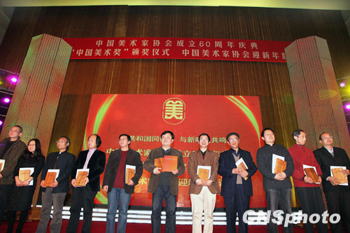 12月25日,第十一届全国美术作品展暨首届中国美术奖颁奖典礼在北京人民大会堂举行。本届美展以推进艺术观念、内容、风格、流派的继承创新,努力发掘新人,充分展示了近五年来的优秀艺术成果,本届美展有153件作品获奖。其中金奖18件,银奖45件,铜奖49件,优秀奖41件。