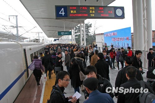12月26日,武广高铁首班车抵达广州北站。中新社发 余明 摄
