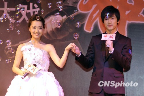 图为有“小金喜善”之称的白冰和胡歌携手献唱电视剧《神话》主题歌,二人将在片中演绎一场旷世绝恋。中新社发 李学仕 摄
