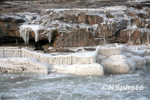 黄河壶口瀑布出现奇特美丽冰凌景观(4)