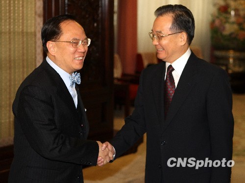 12月28日上午,国务院总理温家宝在北京中南海紫光阁会见前来述职的香港特区行政长官曾荫权。中新社发 任晨鸣 摄