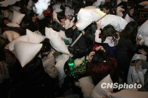 组图:武汉举行五百人枕头大战狂欢派对(2)
