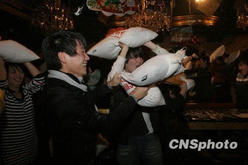 组图:武汉举行五百人枕头大战狂欢派对(3)