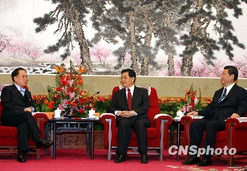 12月28日下午,国家主席胡锦涛在北京中南海会见前来述职的香港特区行政长官曾荫权,国家副主席习近平等参加会见。中新社发 任晨鸣 摄