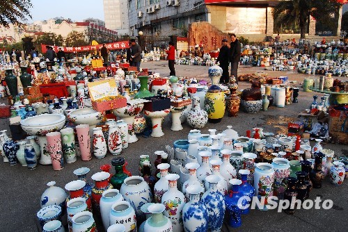 图:景德镇陶瓷展商家怒砸瓷器(2)