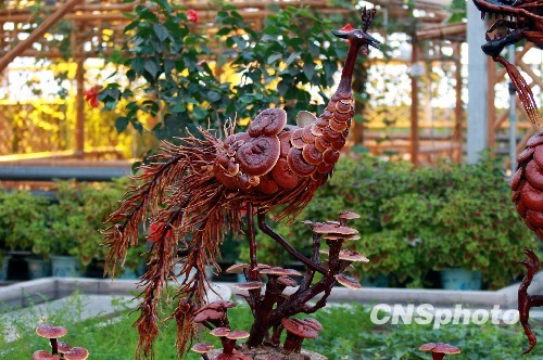 图为园艺师用灵芝栽培的凤。中新社发 姚庭山 摄