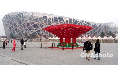 12月下旬,世博会标志性建筑“中国馆”矗立在北京奥林匹克公园。两个中国最重大事件的标志物交融汇合,成为游客驻足观赏留影的新景观。
