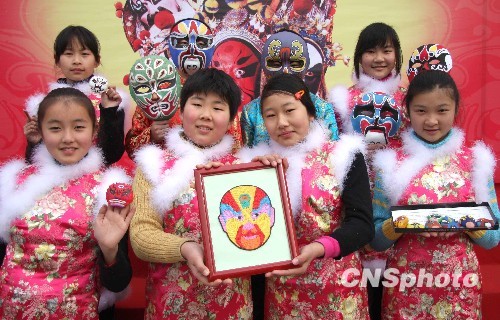 图:苏州小学生绘脸谱迎新年(2)