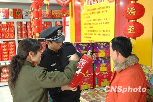 12月29日,南京市的烟花爆竹全面销售。该市雨花台公安分局的民警开始对辖区烟花爆竹销售点的消防器材、烟花品种、摆放位置等进行安全检查,确保节日安全。