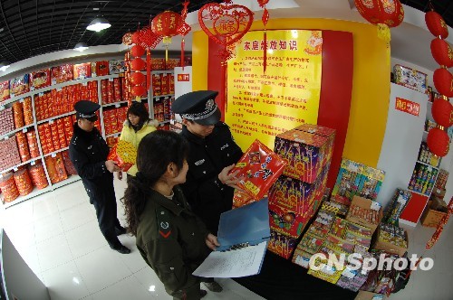 图:南京警方检查爆竹销售点 保节日安全(2)