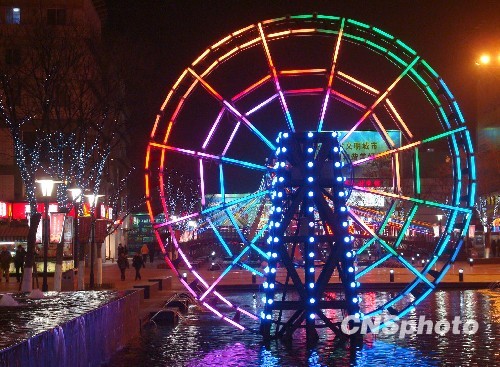 古城苏州街头到处灯光璀璨,霓虹闪烁,一派绚丽多彩的迎新年美景。中新社发 王建康 摄