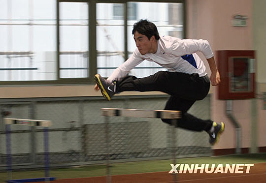 刘翔在公开课上练习跨栏。范筱明 摄