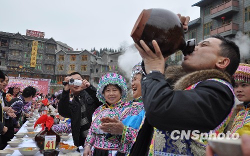 图:四川苗寨摆起百米长宴庆丰收迎新年(3)