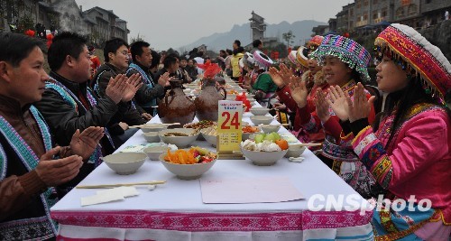 图:四川苗寨摆起百米长宴庆丰收迎新年(5)