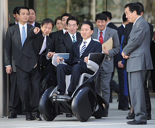 12月30日,日本首相鸠山由纪夫抵达日本某公司试驾该公司生产的“i-Real”单人用交通工具。“i-Real”由轻质的碳纤维和塑胶制成,控制方式由传统汽车的方向盘操作改为两侧手臂休息处的控制面板,最高时速可达18.6英里/时。