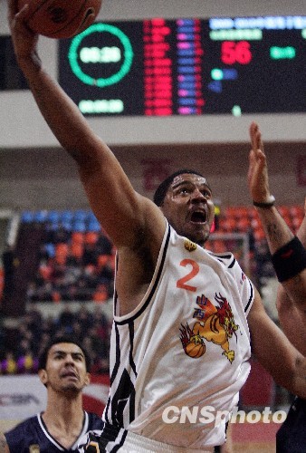 12月30日晚,2009-2010赛季CBA第五轮打响,为求主场首胜的山西汾酒男篮迎战浙江稠州银行。最终山西汾酒以83:99惨败浙江稠州银行。图为前火箭队员泰勒(白)上篮。中新社发 张云 摄