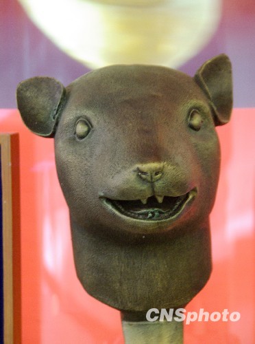 圆明园十二铜兽首(仿品)子鼠,现收藏于法国。中新社发 姚俊 摄