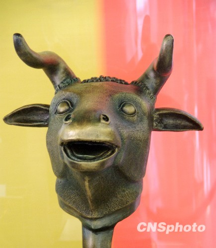 圆明园十二铜兽首(仿品)丑牛。中新社发 姚俊 摄