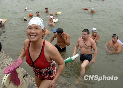 图为冬泳迎新年活动现场。中新社发 王东明 摄