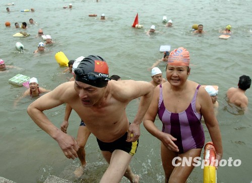 图为冬泳迎新年活动现场。中新社发 王东明 摄