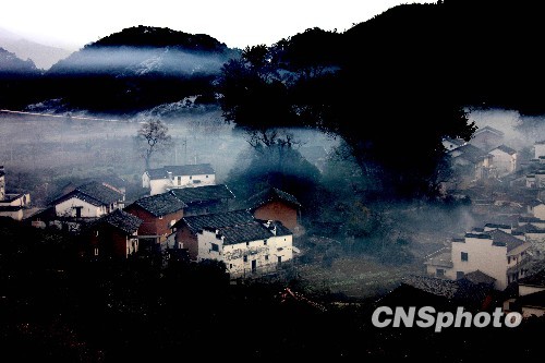 江西婺源石城炊烟袅袅犹如画。中新社发 方也广德 摄