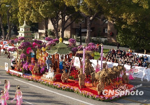 图:美国玫瑰花车大游行热闹登场(2)