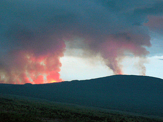 图为尼亚穆拉吉拉火山爆发引燃周围森林。
