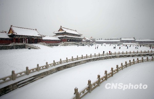 1月3日,北京普降大雪,纷飞瑞雪把北京故宫打扮得银装素裹。中新社发 杜洋 摄