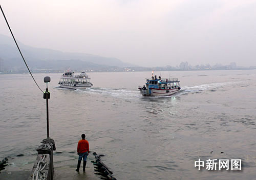 1月3日,元旦假日最后一天的台北淡水,轮渡依然十分的忙碌,载着游客穿梭往来于淡水老街与渔人码头之间。作 者:陈立宇