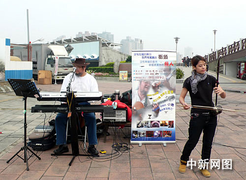 1月3日,元旦假日最后一天的台北淡水渔人码头,艺人”霸哥”与琴妹演奏的《梁祝》,一点也不输给专业的演员,让游客听得如痴如醉。 作 者:陈立宇