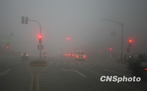 1月4日凌晨6时起,四川眉山再次遭受大雾袭击,能见度小于50米,眉山市气象局发布大雾橙色预警。大雾给节后第一天上班的市民出行带来不便,前往成都、绵阳、都江堰、重庆的旅客受阻,大雾导致成乐高速全线双向封闭。气象部门预报,受高原切变和北方冷空气扩散南下影响,从当日开始,未来72小时,四川盆地日平均气温累计将下降3℃-5℃,冷空气影响时有3℃-4级偏北风。截止记者发稿,成乐高速眉山、彭山已开始单边放行。中新社发 刘忠俊 摄