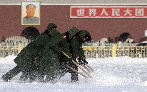 组图:暴雪过后 北京民众清扫积雪(2)