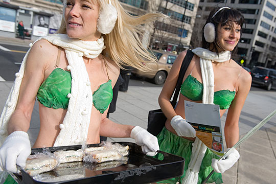 图:“豆腐三明治西施”寒风中宣传素食(4)