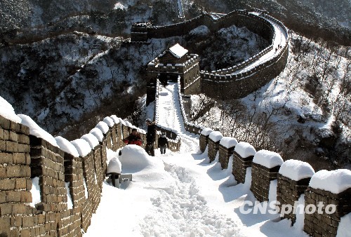1月4日,大雪后的慕田峪长城壮丽唯美。