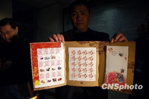 1月5日,“虎年”特种邮票首发仪式上出售的邮品。中新社发 吴如雄 摄