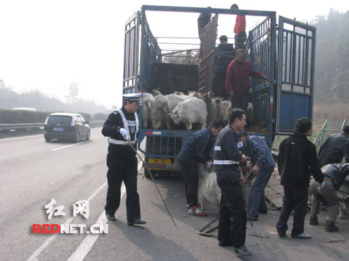 货车侧翻羊群“大逃亡”交警充当“灰太狼”(3)