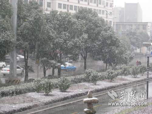 武汉飘落2010年首场大雪。