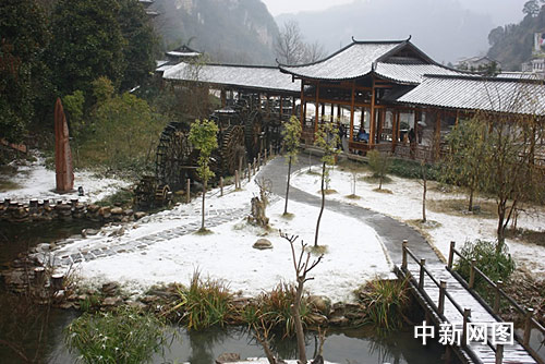 中新网张家界1月5日电(邓道理 吴勇兵 王传殊)1月5日,湖南张家界迎来2010年的第一场雪,纷纷扬扬、飘飘洒洒的雪花把核心景区武陵源风景名胜区装扮成一片洁白的世界。
