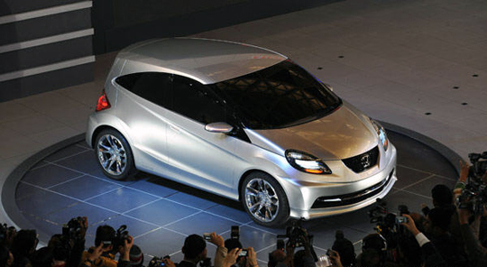 图为人们观看一辆新款小型概念车。