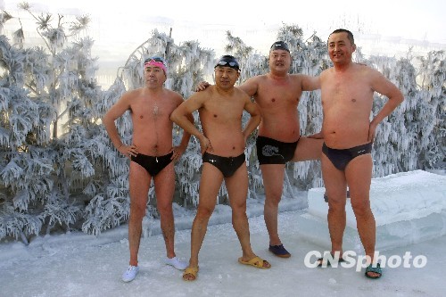 小兴安岭冬泳队基地位于黑龙江省伊春市南岔区永翠河畔。永翠河水发源于距南岔100公里的界山山涧中泉水,不仅甘甜清澈且水温比松花江的水要低3-6度,冬日环境最低气温达到零下36度。 10年前,小兴安岭冬泳基地附近有七八个游泳爱好者游到冰封为止。1999年,开始破冰冬泳,当时挖了个地窨子,四周围上塑料布,上面盖上蒿草,用来遮挡风寒、换衣服,时常遭到破坏。2006年,这里的冬泳人已发展到30位之多,成立了冬泳协会,制定了章程。为了有一个永久的场所,全体会员建起一间10平方米面积的小屋,平整了40平方米的停车场,栽种了300多棵树木和兴安杜鹃等花卉,用河卵石砌起两道80米长的河堤和防护墙,终于使冬泳协会有了自己的家 如今小兴安岭冬泳队基地已经成为当地一大景观。冬泳池五米宽二十米长,冬日每天的冻层达10公分左右,每天13点冬泳队员们准时到达现场,首先用钎子将冰凿个洞,然后用锯拉,再用钎子凿开,最后用钩子耙子往池外一块一块的捞,并把这些冰得一快一快搬运出场。在劳动中队员们配合默契,紧张有序。每日队员们要劳动1-2小时,搬运的冰量达3-5吨。