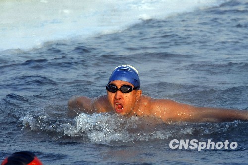 冬泳队员们谈到“林区的物质生活不能和大城市相比,但是,冬泳使他们成为精神上的富翁。”中新社发 于虤虤 摄