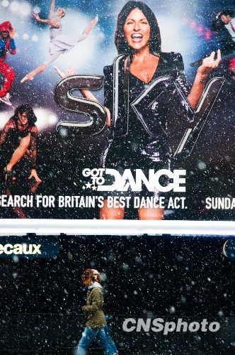 1月6日伦敦,行人在大雪中行进。从5日夜间起英国大部分地区遭大雪侵袭,南部地区降雪量近40厘米,部分交通中断,气温达三十年最低点。当地气象局预计,伦敦今夜气温将降至零下七摄氏度。
